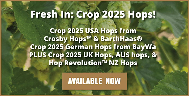 New Crop 2025 hops are here! Fresh US arrivals from Crosby Hops as well as BarthHaas, plus German Crop 2025 hops from BayWa, UK Crop 2025, as well as Australia and New Zealand. In stock and ready to ship now!