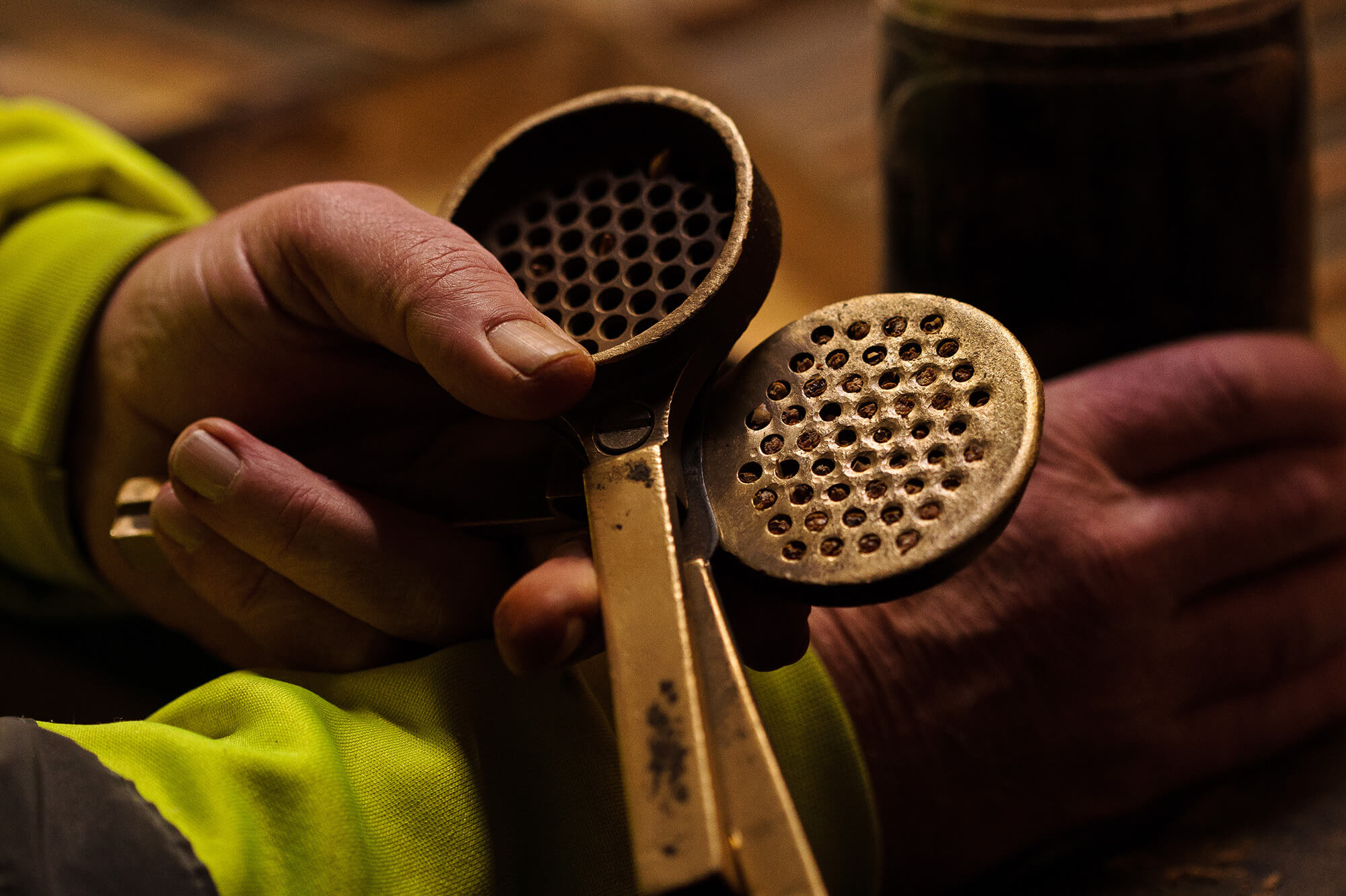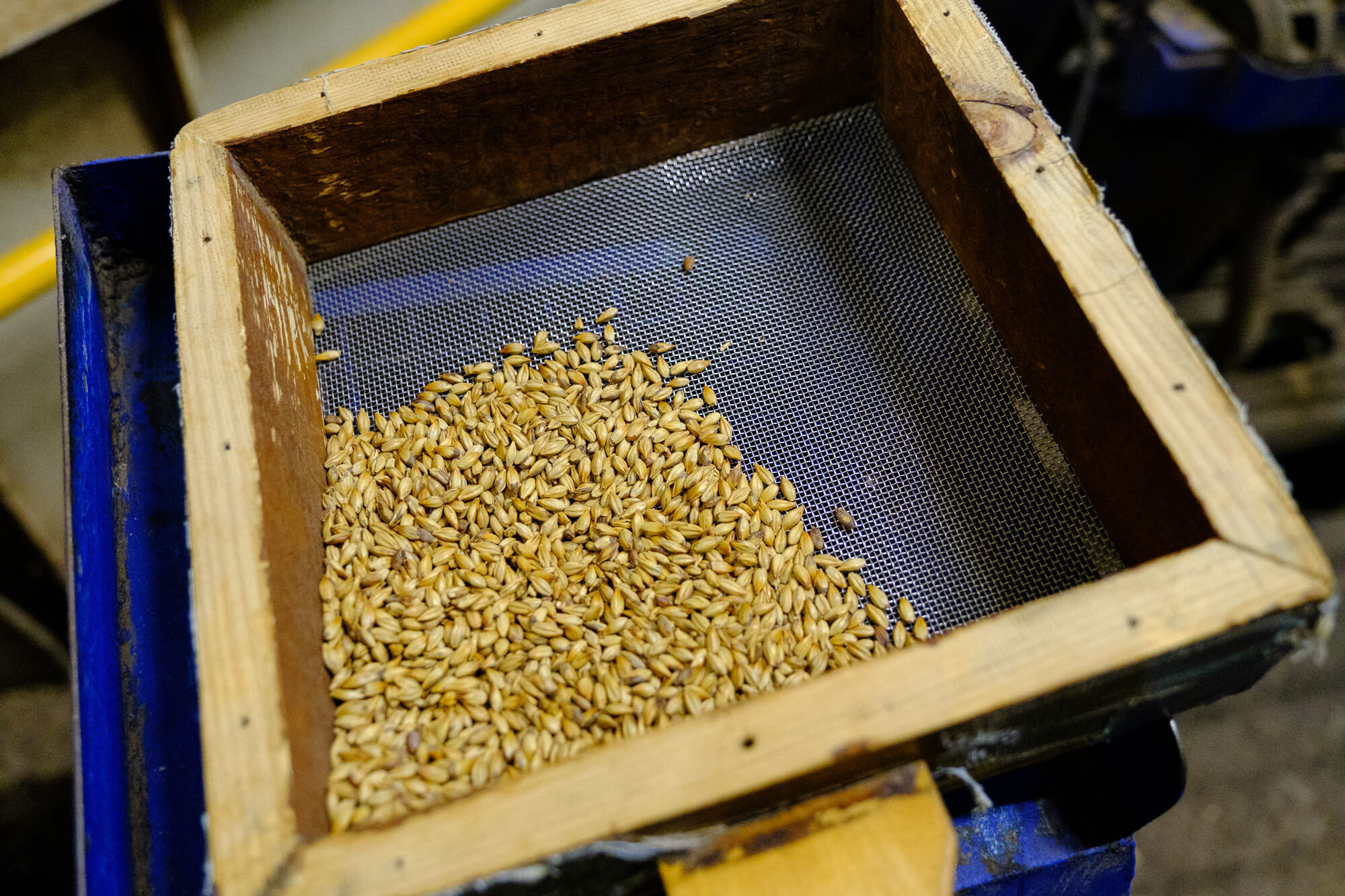 Just taking barley into silos for storage is a labour intensive process – first it must be dressed and dried. Dressing removes chaff and lighter grains; drying brings moisture below 12% to prevent pests and ensure safe storage. We also cool the barley to below 12°C heading into winter, which helps maintain condition. Each batch is monitored for temperature and moisture so it stays stable in storage until it’s ready for processing. It’s futile us carrying out this process if the barley isn’t up to spec, so we need to assess early through pre-delivery samples, and then work up from those into the bulk loads. It’s then an ongoing process of assessment, collecting a representative sample of every variety that’s coming in and sending it up to our lab in Arbroath. We’ll pre-screen the load, carry out barley analysis, micromalt analysis, and then macromalt analysis – making the process of ‘sampling’ is almost constant.