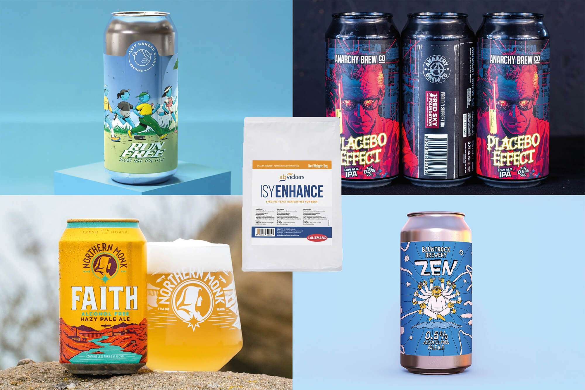 Left Handed Giant's 'Run Free', Anarchy Brewing Co. 'Placebo Effect', Northern Monk 'Faith AF' & Bluntrock 'Zen' all pair Lallemand LalBrew® LoNa™ with AB Vickers ISY Enahnce for additional body & mouthfeel.
