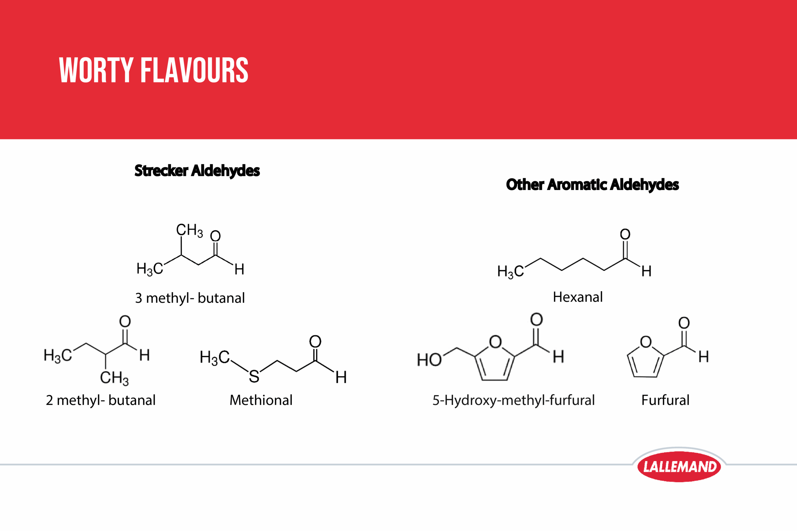 Lallemand Brewing Graphic Showing Common Aldehydes Creating Off-Flavours which Low Alcohol Beers are Especially Susceptible to.