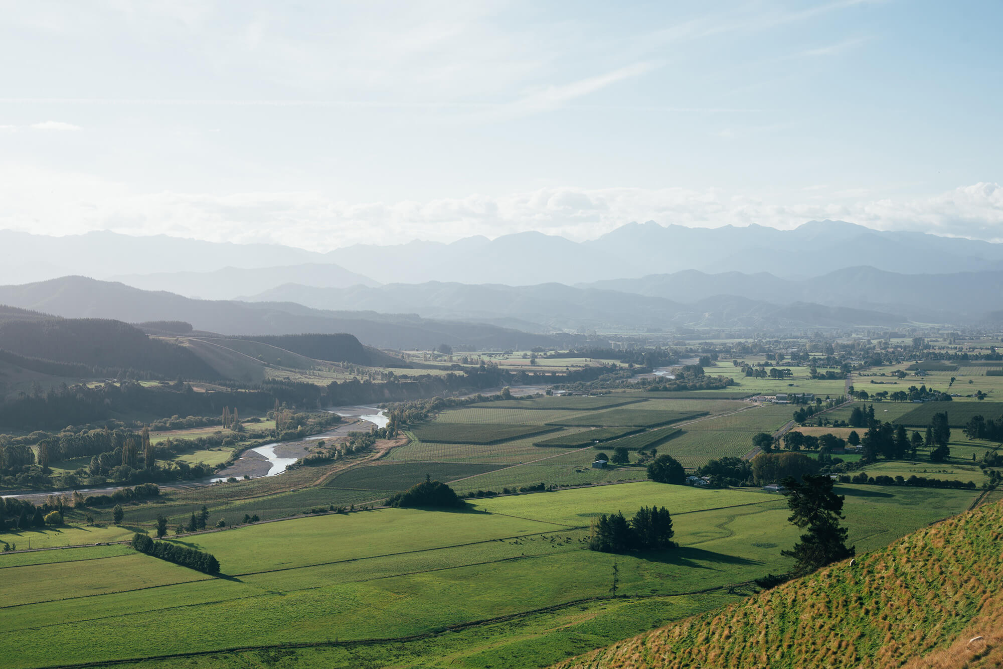 Hop Revolution's Wairua Farm, with the Motueka River running alongside.