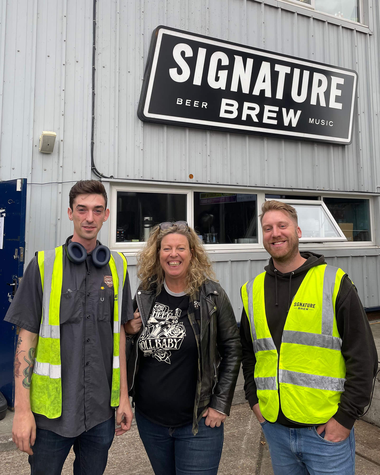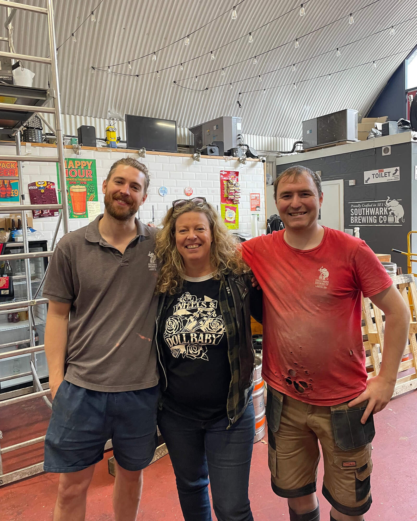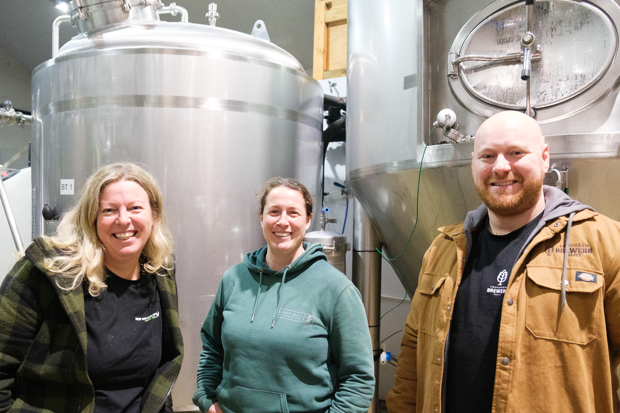 The gang meet up at Burnt Mill Brewery. L-R: Dr Susan Wheeler - GM of Science & Innovation at Hop Revolution, Sophie de Ronde - Head Brewer at Burnt Mill, & Dan Rybinski - Midlands UK Sales Manager at Loughran Brewers Select.