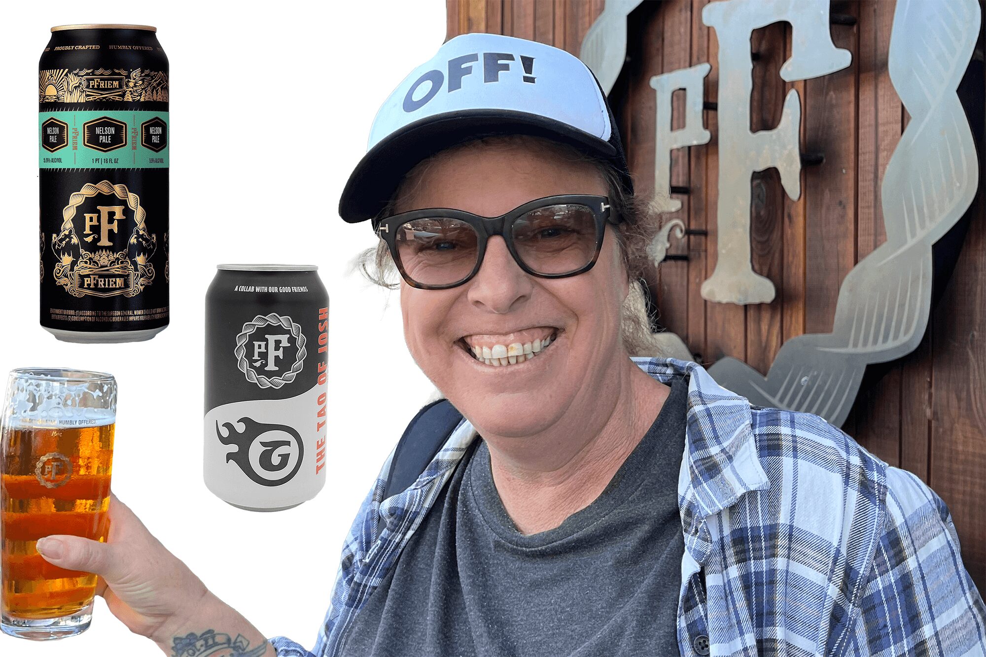 Susan at her happiest, with a pint at pFreim Family Brewery at Hood River, Oregon. pFreim's core beer 'Nelson Pale' uses Hop Revolution Nelson Sauvin™, as does the pFreim x Georgetown Collab 'The Tao of Josh West Coast IPA'.