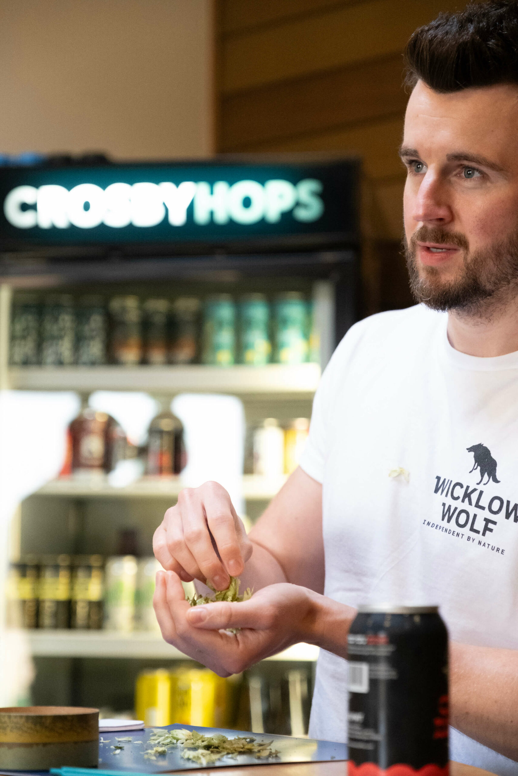 Andrew Hamilton, Head Brewer at Wicklow Wolf in Ireland during selection of Crosby Hops Centennial for Harvest 2024. Centennial features in several Wicklow Wolf core range beers, including 'Elevation' Pale Ale & 'Mammoth' IPA.