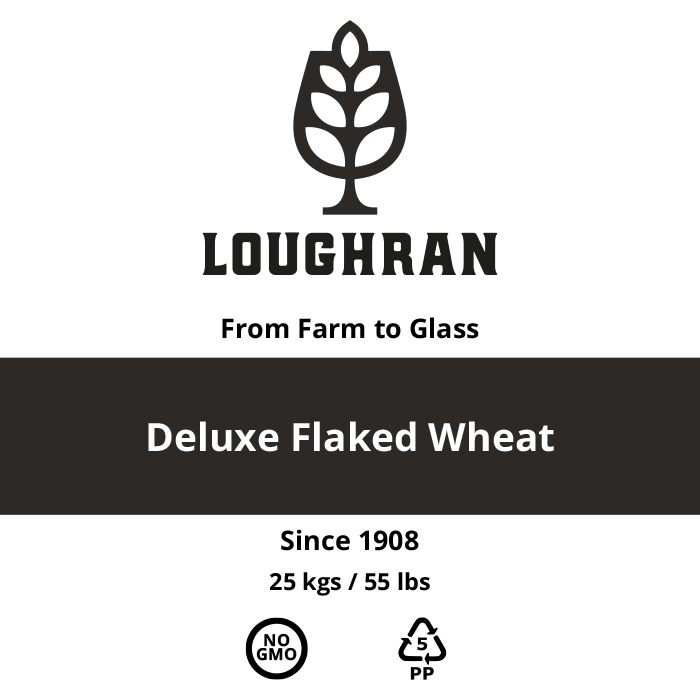 Loughran Deluxe Flaked Wheathas been specially selected by the Loughran team. Drawing on seven generations of family barley growing wisdom from our origins on our farm in Dundalk, Ireland, and our experience and expertise in UK malting and brewing from Brewers Select in Peterborough, we choose only the best farmers to work with. These lasting partnerships form the backbone of everything we do, and allow us to deliver brewers and distillers the finest malts and adjuncts., in the process connecting them to the heart of their ingredients in the journey from farm to glass.